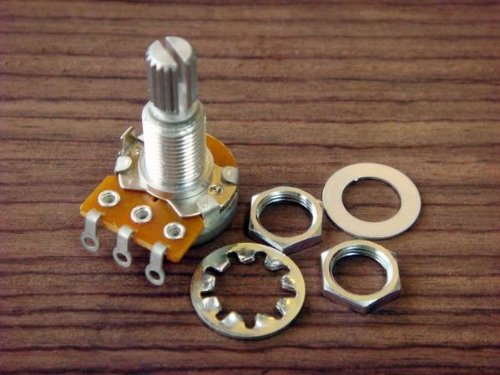 Brand New Made-In-JapanB500K Control PotSpecification:Type of pot - Liner 500K-OhmBass Size - 16mm "Dime" SizeBottom Thread Diameter - 8mm (5/16" hole is recommended, however it works with 3/8" hole)Top Thread Diameter -6mm ( Our pot knobs just fit!)Comes with - 2 nuts, 1 lock washer, 1 regular washerResistances & Curves:Use 250K for single coil pickups and 500K for humbacker pickupsOn the other hand, using 500K for single pickups gives your guitar Hi-Fi sound,and using 250k for humbackers gives your guitar a warmer sound than 500K.Standard guitars use Liner pot for Volume and Audio taper pot for Tone control.Audio taper pot changes level in proportion to how much you twist.Liner pot changes radically 1 to 5 area, and changes little by little 6 to 10 area.